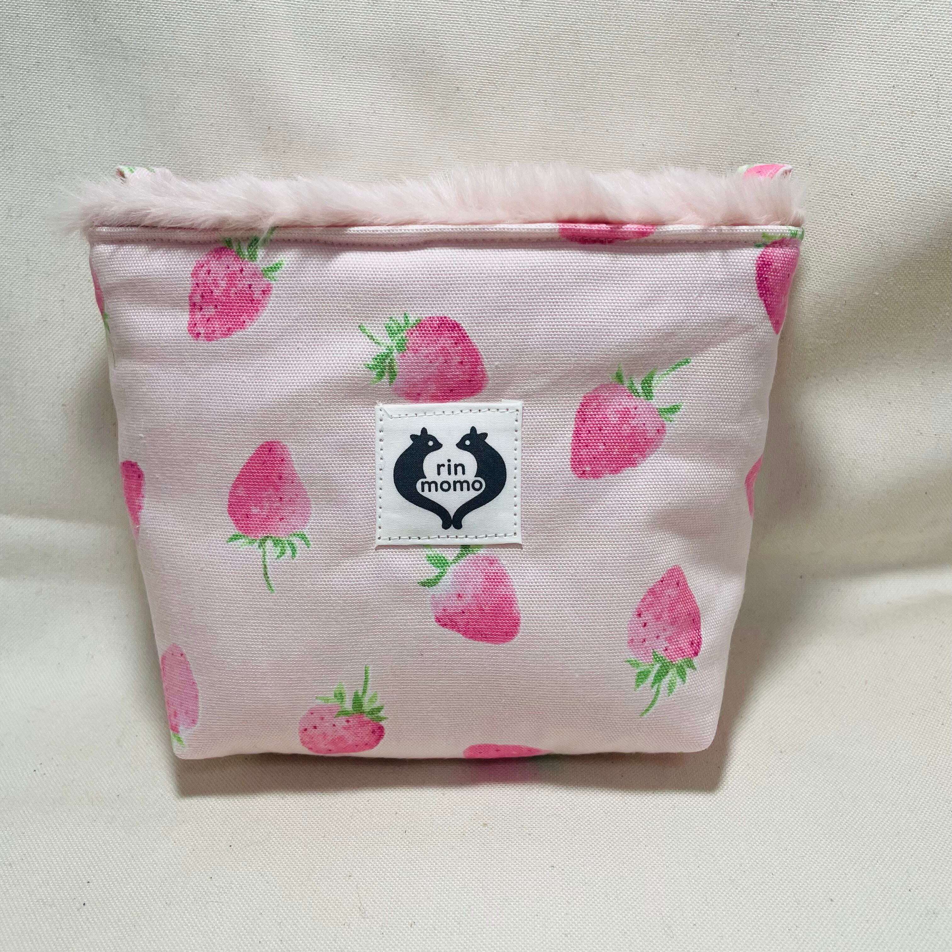 モモンガポーチ【L】いちご柄【ラビットファー】