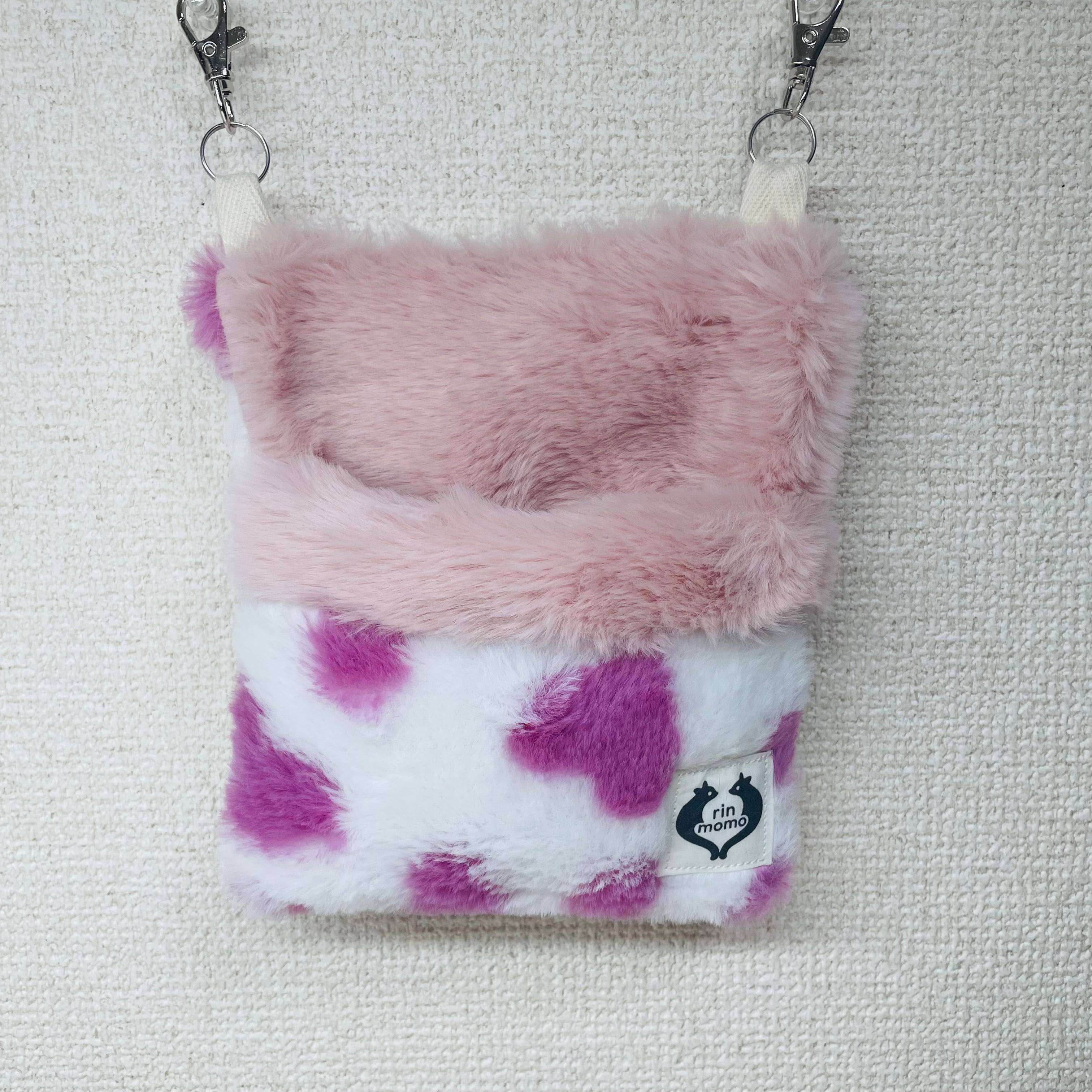 ポケットポーチ【M】ハート柄【両面ファー】
