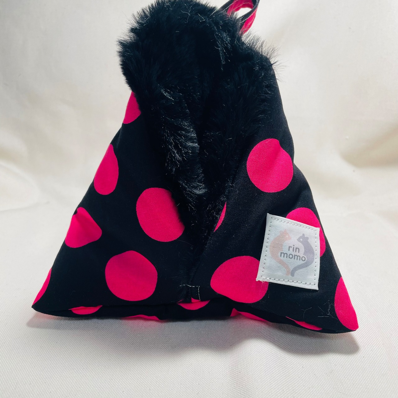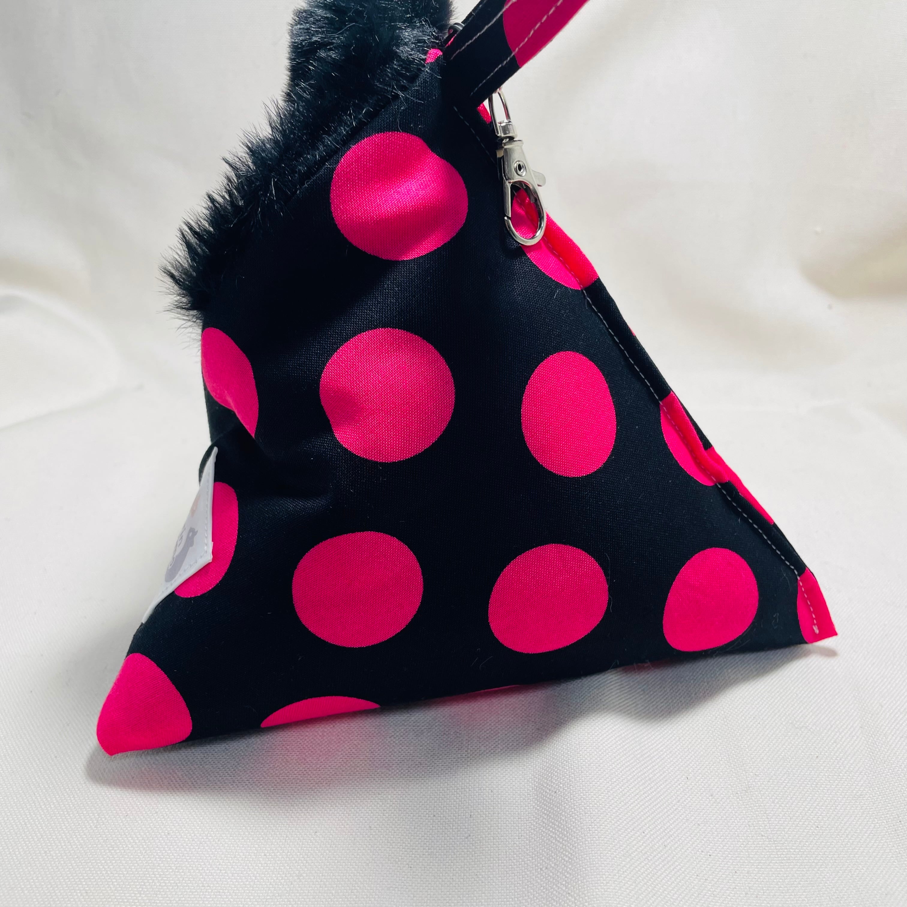 テトラポーチ【特大】ドット柄黒【ラビットファー】